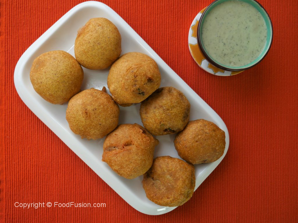 Grease hands with oil,take a mixture and make a flat round balls and coat in prepared gram flour batter.