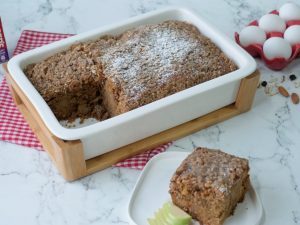Cake ka upper icing sugar ko chirak dein,desired slices mein cut karein aur tayyar glaze drizzle ker ka serve karein.