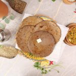 -On a butter paper,place dough ball,sprinkle millet flour & spread with the help of fingers (6-inch).