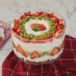 -Add olper’s whipped cream,strawberry puree,add strawberry,pineapple & kiwi slices.