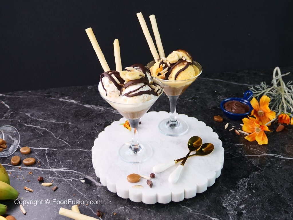 Bananas + toffee + ice cream + Chocolate = the perfect Banoffee Ice Cream Sundae recipe! #Hico #icecream #FoodFusion #HappyCookingToyou