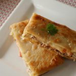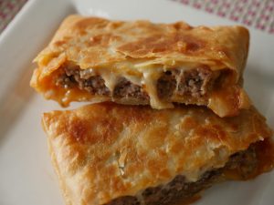Beef patty rakh dein aur flat bread (roti) ka tamam edges ko fold ker lein aur egg white laga ker seal ker lein.
