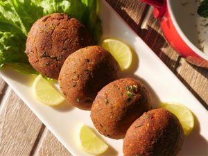 Make kebab balls and shallow fry in heated cooking oil until golden brown.