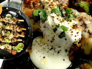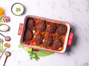 -Bake in preheated oven at 180 °C for 20-25 minutes, flip halfways & brush sauce on kababs.