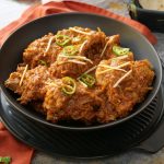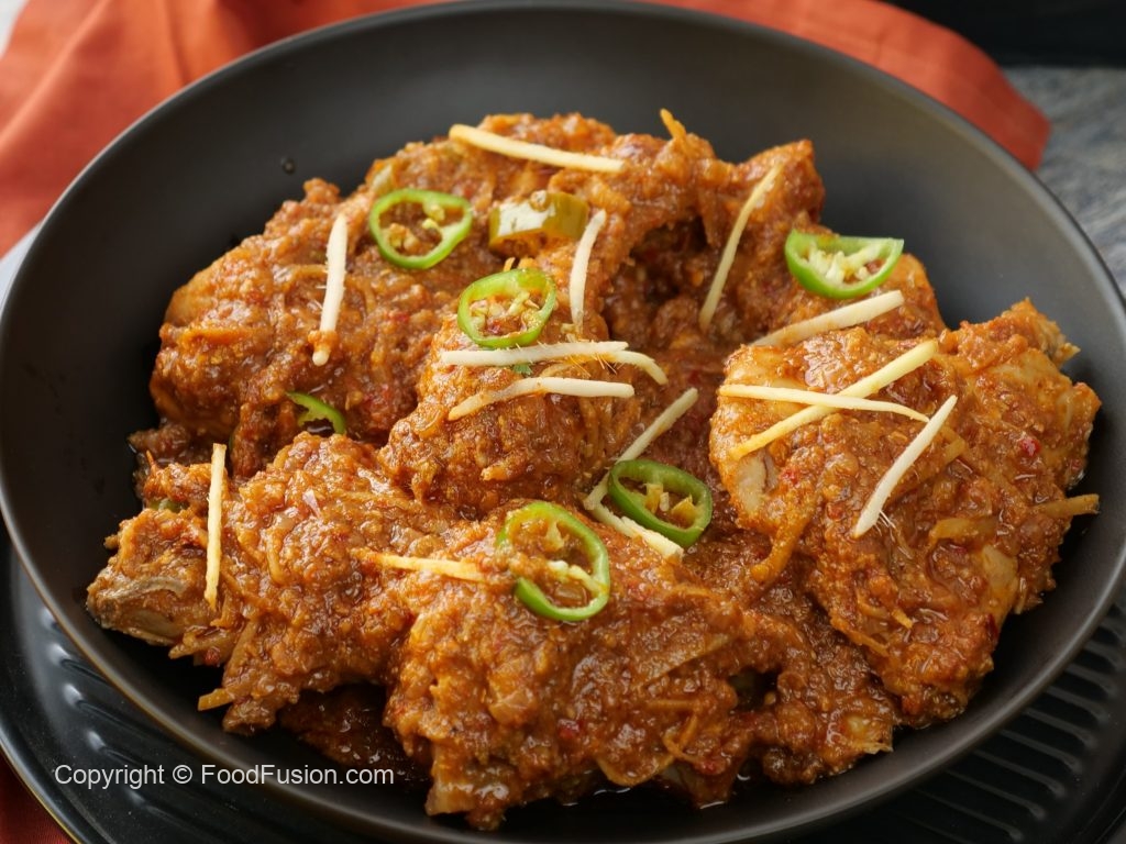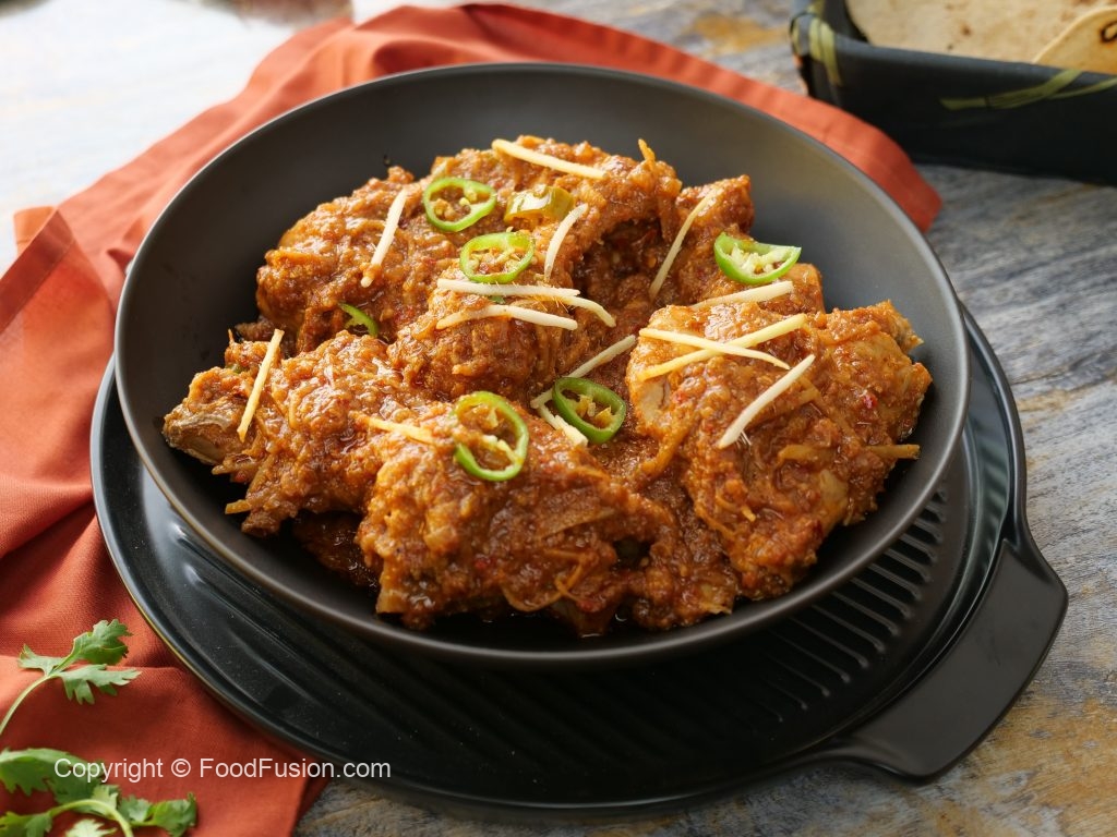 -Add fried chicken & mix well,cover & cook on low flame for 15-20 minutes then cook on high flame until oil separates.