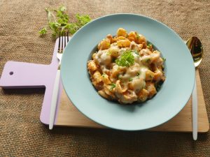 Mozzarella cheese,cheddar cheese aur fresh parsley dal ker dhak dein aur halki ancch per cheese melt hunay tak paka lein (approx. 2-3 minutes).