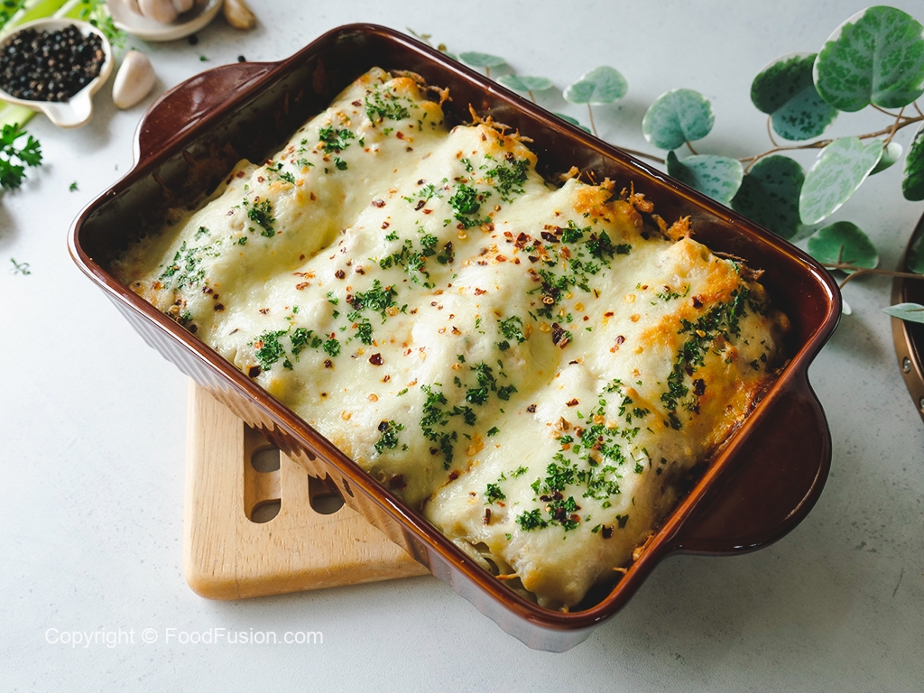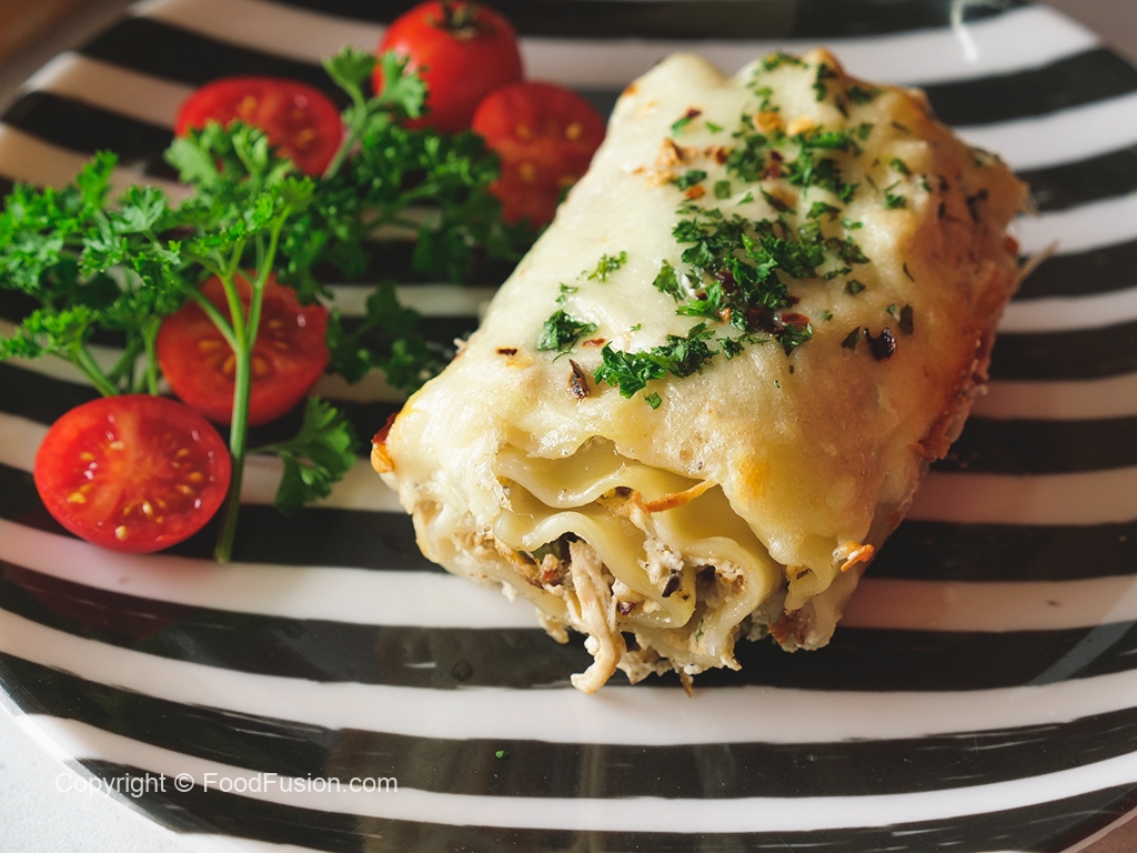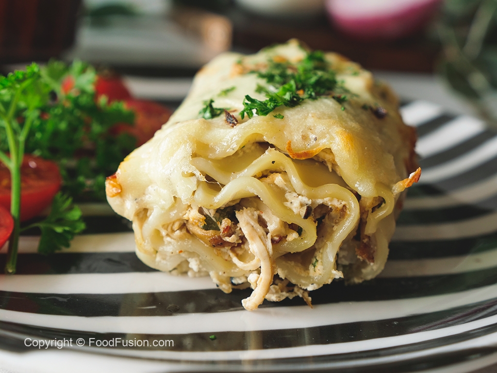 Making Lasagna this way makes it easy to serve and easy to manage portion sizes. Try this chicken Alfredo Lasagna Rollups recipe with methods for baking with and without oven . #HappyCookingToYou #FoodFusion