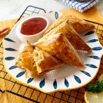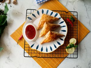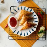 Air fryer machine mein butter paper laga lein,chicken curry puffs rakh ker anday ki zardi laga lein aur 8 minutes kliya 200 C per air fry ker lein.
