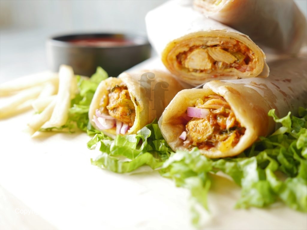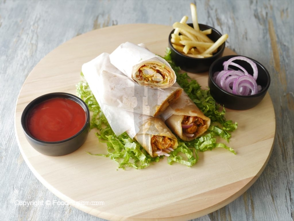 On paratha,add tomato ketchup,onions soaked in lemon juice,cooked chicken,wrap & serve.