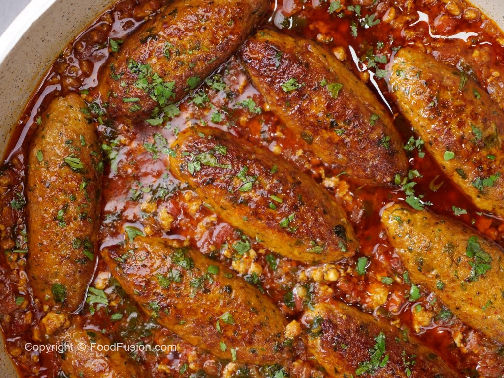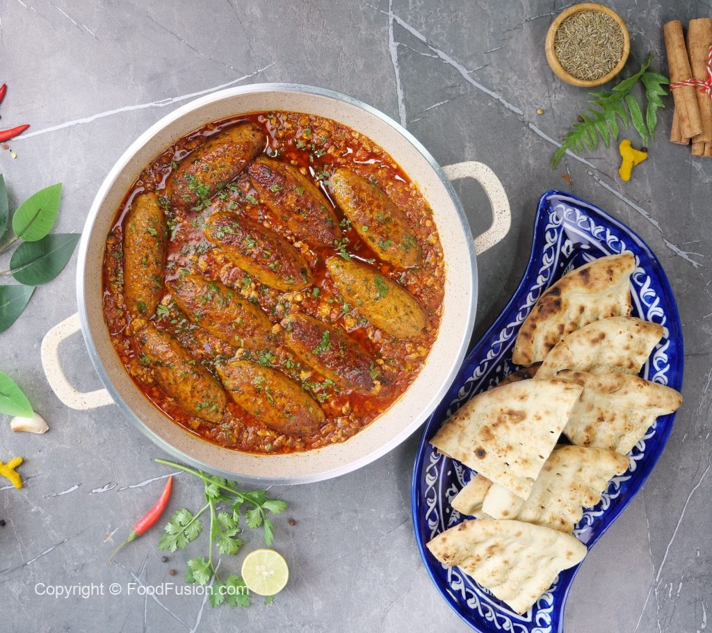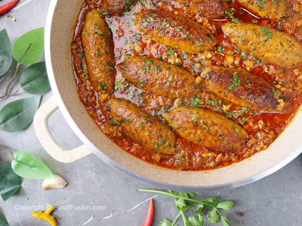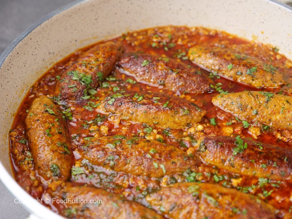 -Add prepared seekh kabab,fresh coriander,cover & simmer on low flame for 4-5 minutes & serve!