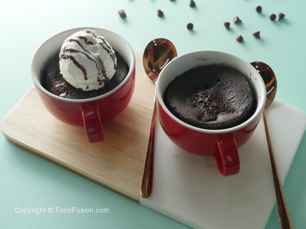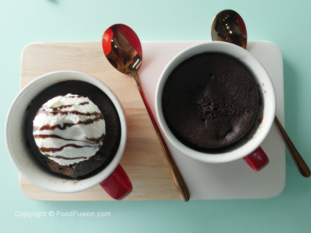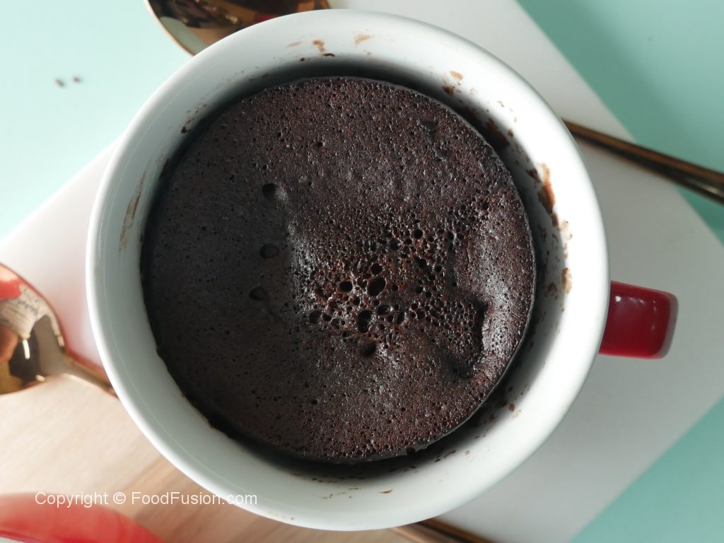 Mug mein anda,makhan,neem garam doodh,vanilla essence,maida,baking powder,bareek cheeni, namak aur cocoa powder dal ker ache tarhan mix ker lein.
