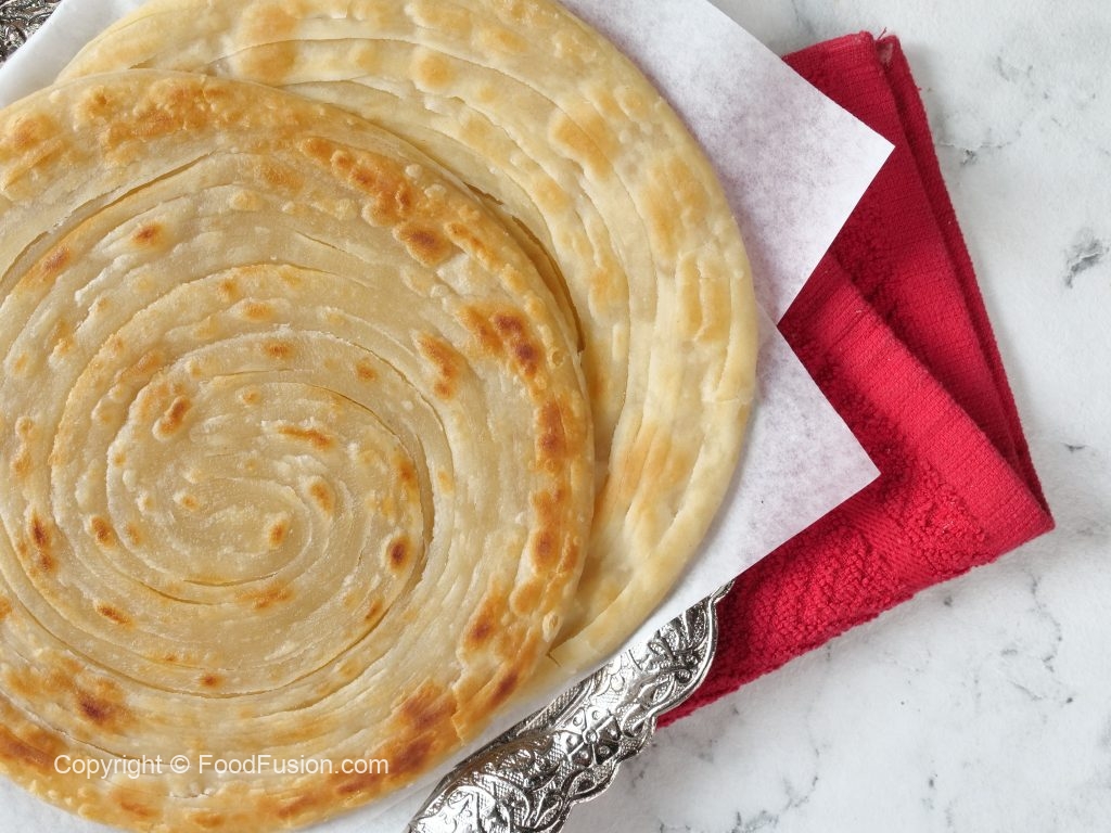 -Add paratha and fry on medium flame from both sides with clarified butter until golden.