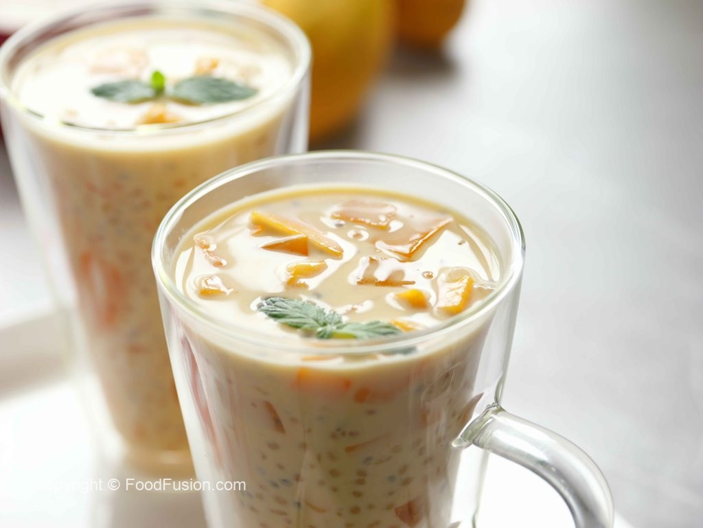 -Ek bowl mein mango puree,boiled sagu dana,mango cubes, soaked tukhme balanga,mango jelly,tayyar creamy milk aur ice cubes dal kar mix ker lein aur serve karein!