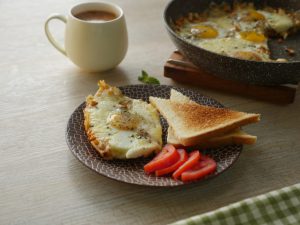 Add eggs,one by one then add black pepper crushed,chedder cheese and fresh coriander,cover and cook on low flame for 2-3 minutes & serve!