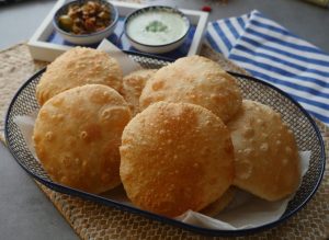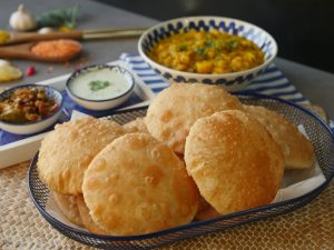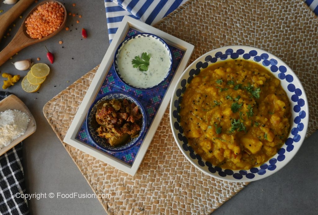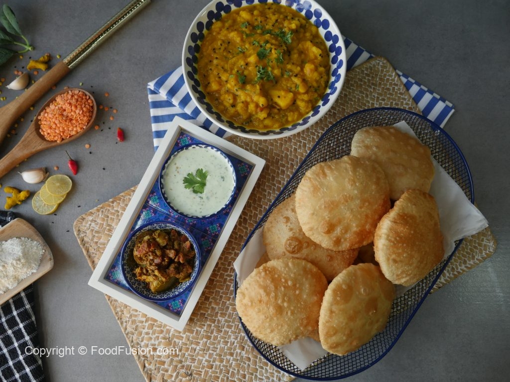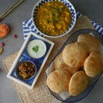 Serve daal kachori with aloo ki tarkari,mixed pickle & yogurt raita!