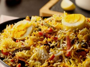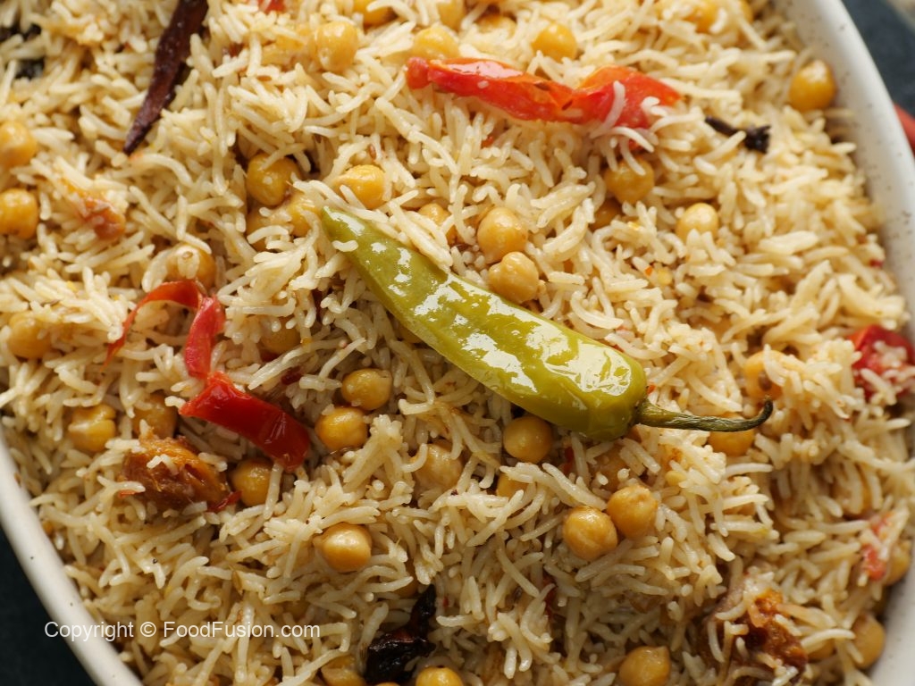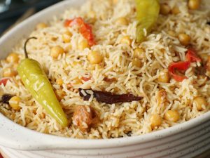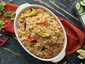 -Serve degi chana pulao with yogurt raita,salad & fried onion.