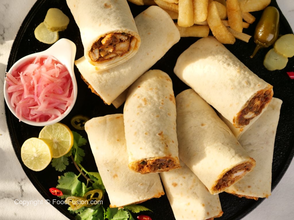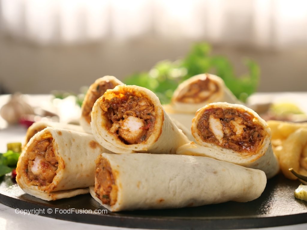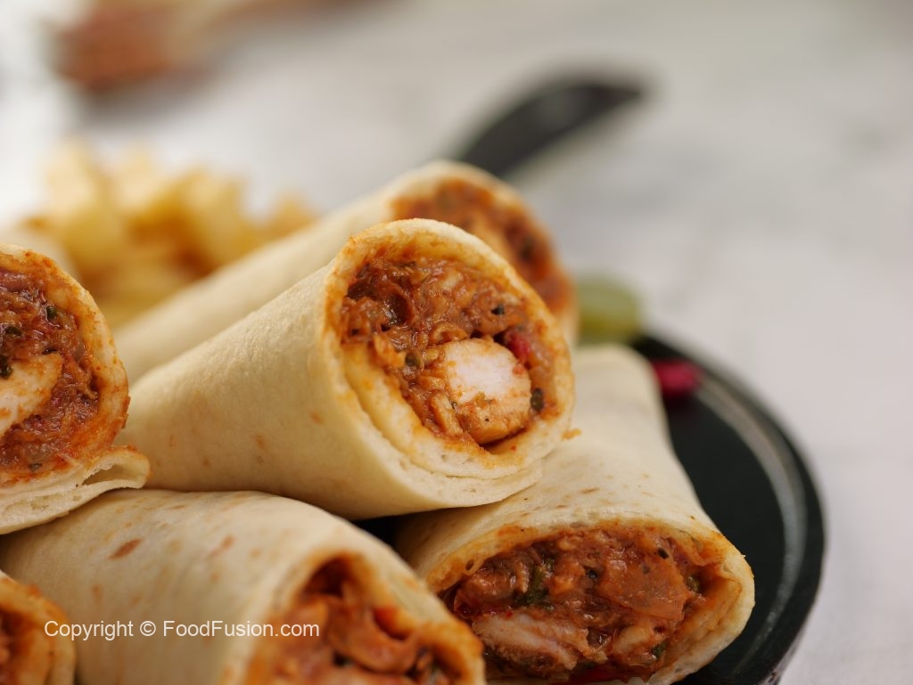 -On shawarma bread,add & spread mayonnaise,add cooked chicken & roll up.
