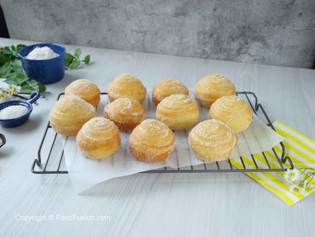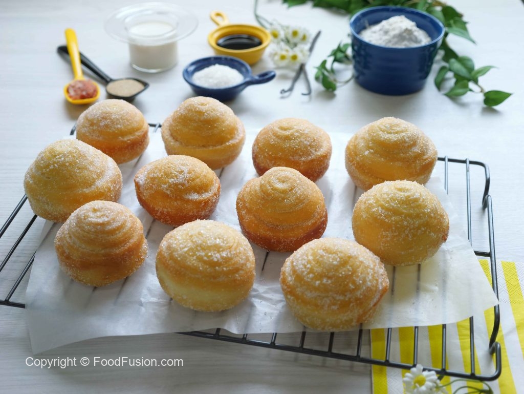 -In a wok,heat cooking oil (140°C) & fry on low flame until golden & coat properly from all sides with caster sugar (makes 12).