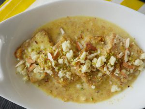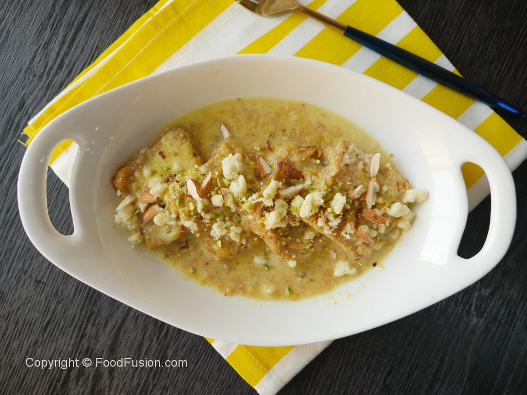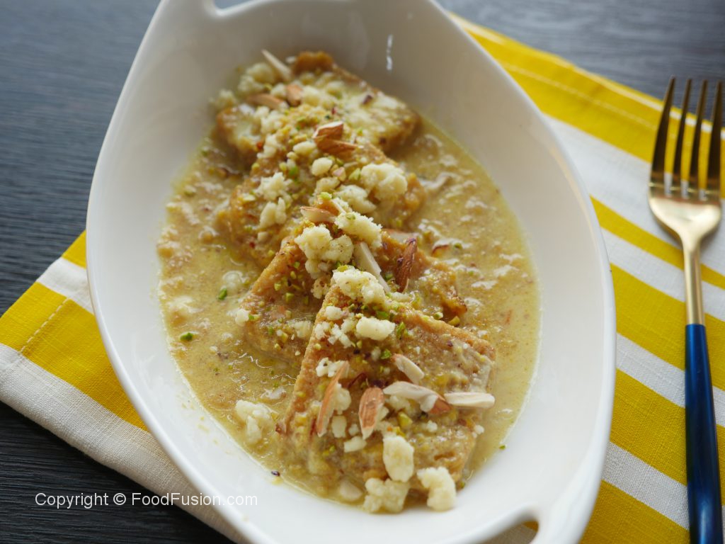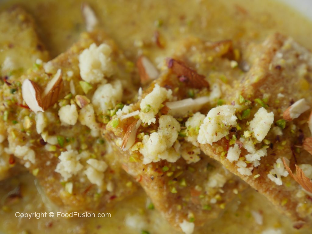 Chulha bund ker dein aur fried bread pieces dal ker 10 minutes soak hunay kliya chor dein aur carefully turn ker lein.