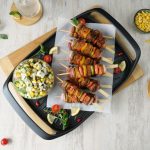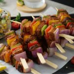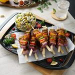 Fajita Skewers with Corn Feta salad