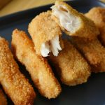 Now coated fish pieces in all-purpose flour mixture then dip into beaten eggs & coat in breadcrumbs.