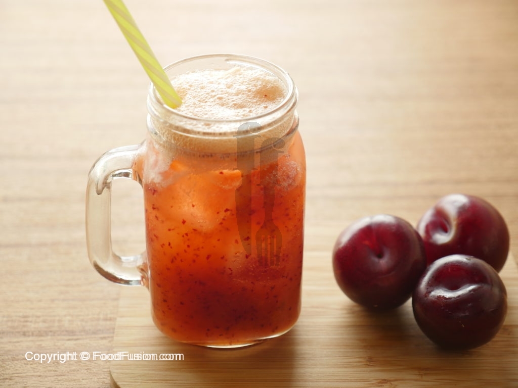 In blender,add plums,sugar,black salt,water and blend until well combined.