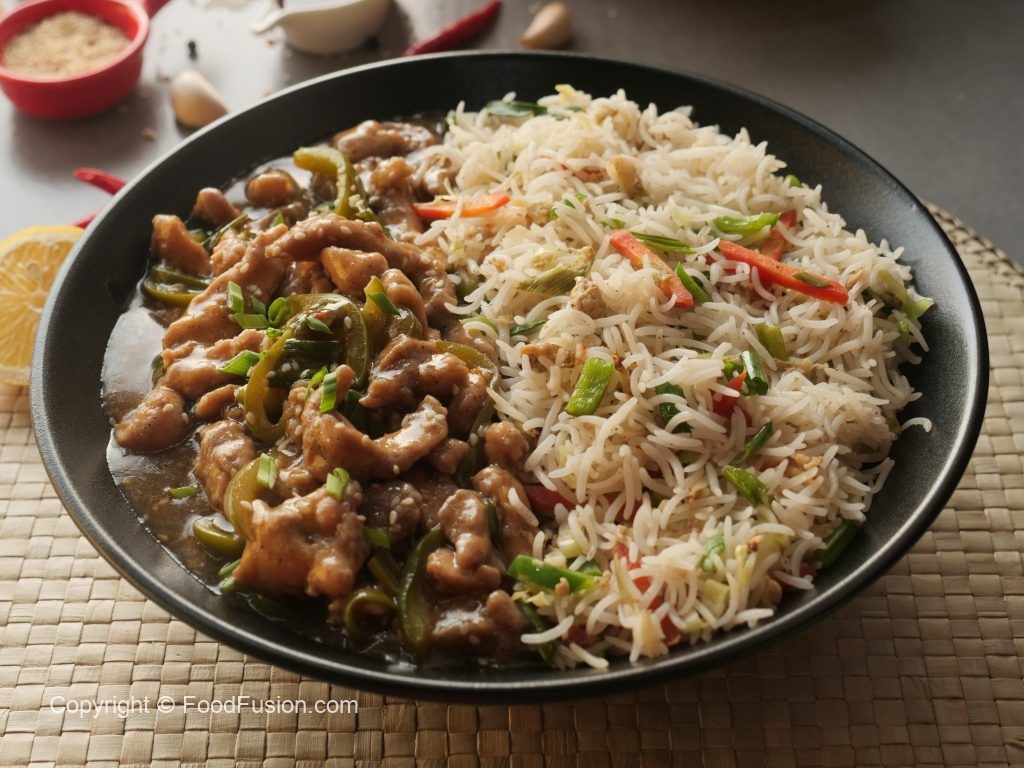 Another indo-chinese recipe, Chicken Mangolian with Fried Rice. A complete step by step recipe with simple ingridients. #HappyCookingToYou #FoodFusion