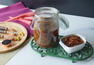 In carrot achar,add mustard oil and mix well (yields 630g).