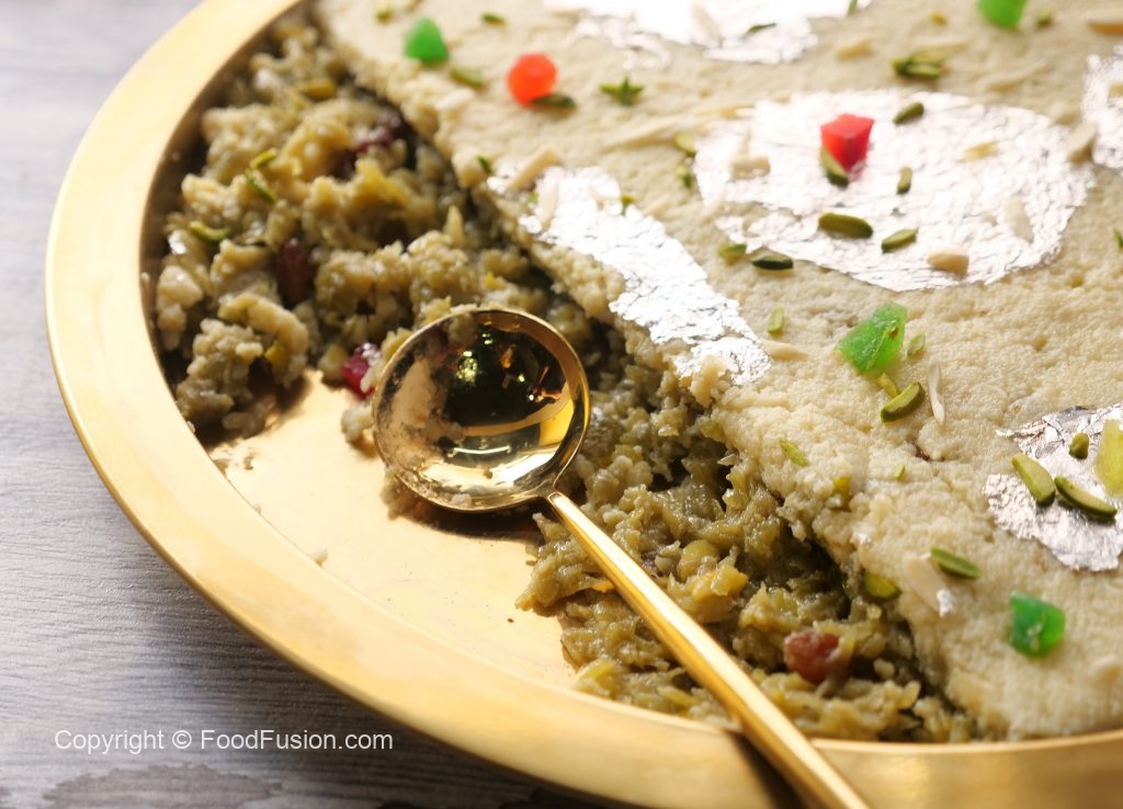 Ab is par naram kia hua khoya daal kar phela len. Chandi ka warq, tutti frutti or pista se garnish kar k serve karen!