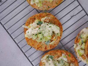 -On a small size tortilla, spread marinated chicken mince nicely & set aside. (Makes: 4-5)