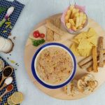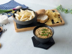 Garnish with chicken sausages,paprika powder & can be used or served with garlic bread,French fries,crackers and nachos.