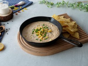 Garnish with corn kernels,green onion leaves & can be used or served with appetizers,nachos,crackers, snack items & pita (toasted).