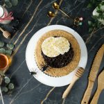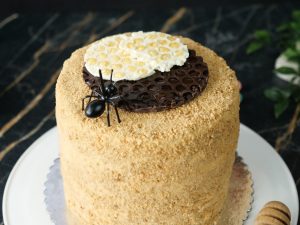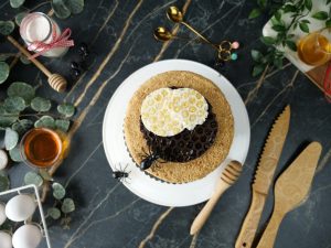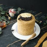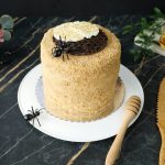 -Cake ka upper & sides per frost laga lein aur crumbs sa cover ker lein.