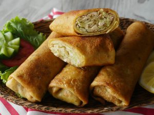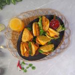 -Frying pan mein cooking oil garam karein (170C) aur low flame par fry karein jab tak golden brown ho jaye (10-12 minutes).
