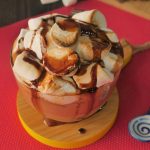 In serving cup,add caramel hot chocolate,marshmallows and burnt with blow torch.