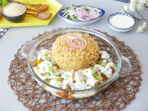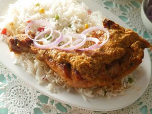 -In a bowl,add chicken,coriander powder,pink salt,kashmiri red chilli powder,turmeric powder,cumin powder,black pepper powder,carom seeds,garam masala powder,red chilli powder,cardamom powder, cashew powder,tomato,yogurt,fried onion,green chilli paste,ginger garlic paste,vinegar,green chilli sauce,red chilli sauce,soy sauce & mix well,cover & marinate for 2 hours.