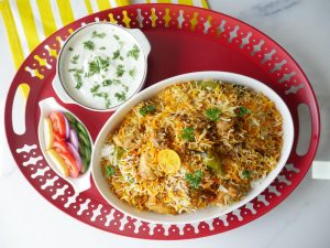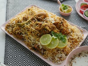 Add mint leaves,boiled rice,remaining prepared spice mix,fried onion,remaining boiled rice and ghee,cover & cook on high flame to build up the steam (4-5 minutes) then turn flame to low and steam cook for 25-30 minutes.