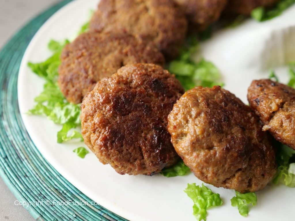 -Chopper mein beef,dahi,fried pyaz,besan,namak,lal mirch powder,zeera,meat tenderizer,haldi powder,garam masala powder,elachi powder,jaifil powder,javitri powder dal ker ache tarhan chop ker lein aur 2 hours kliya marinate ker lein.