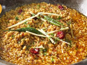 Bowl mein sabut masoor dal aur pani dal ker mix karein aur 15 minutes kliya bheego dein phir strain ker lein.