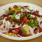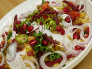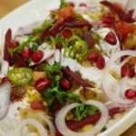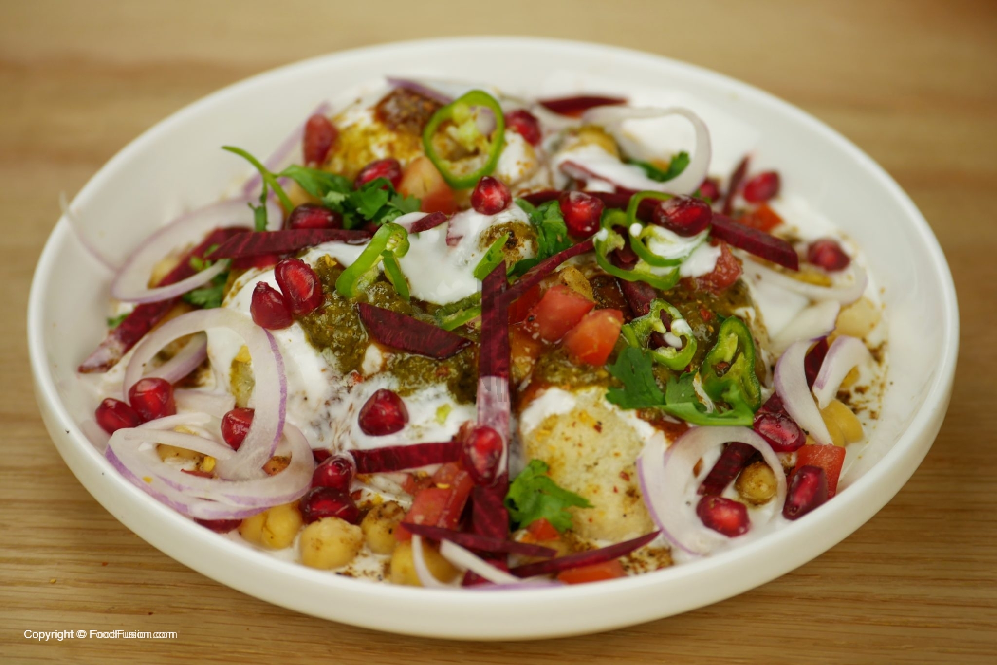 Serving plate mein bhallays aur cholay (boiled),dahi,imli ki chutney,hari chutney,tamatar (chopped),chart masala,kuti lal mirch,chuqandar(julienne),hari mirch,dhania,pyaz aur anar dal ker serve karein.
