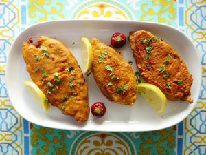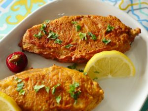 Add fish fillets and coat well,cover and marinate for 3 hours.