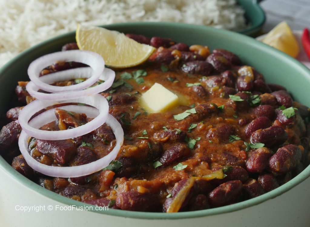 In a pot,add red kidney beans,water,salt & mix well & bring it to boil and remove scum,cover & cook on medium flame until tender (approx. 45-50 minutes) then cook on high flame approx. ½ cup water is left & set aside.