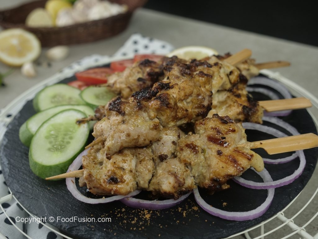 Grease cast iron grill pan with cooking oil & fry skewers from all sides until golden brown.
