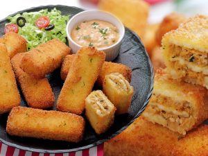 Bowl mein dahi,cheddar cheese,hari mirch paste,cream,zeera powder,kali mirch powder aur fried lehsan dal ker ache tarhan mix ker lein.