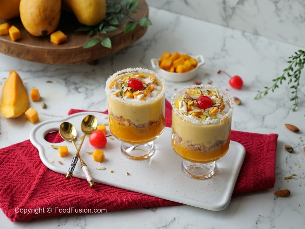 A fusion of mangos with rabri the results is better than you think it is. Mango Rabri Cups #HappyCookingToYou #FoodFusion #OlpersMilk