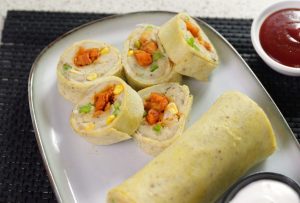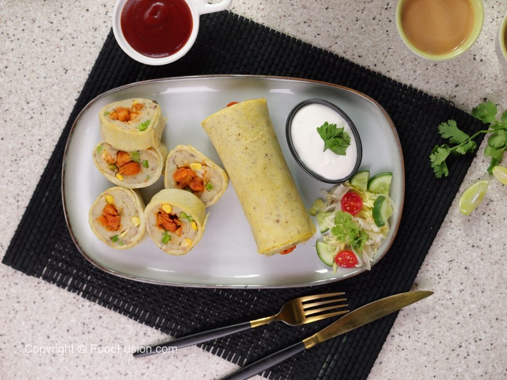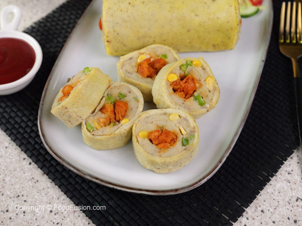 -Grease pan with cooking oil,add whisked eggs & cook on low flame for 1-2 minutes than fold the potato roll on cooked egg & move to one side of pan.