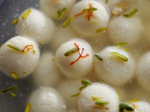 -On low flame,add mini rasgulla balls in sugar syrup & cook on medium flame without stirring for 3-4 minutes,cover & cook for 8-10 minutes or until double in size.