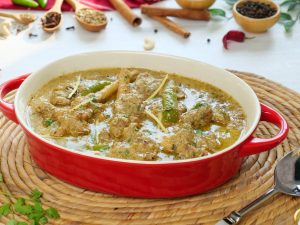 In bowl,add yogurt,nutmeg & mace powder,turmeric powder,salt,coriander powder,red chili powder, mix well and set aside.