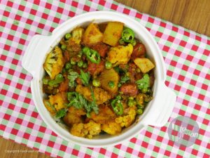 Karhai mein oil,aloo,gajar,phool gobhi aur adrak lehsan paste dal ker ache tarhan mix ker lein.