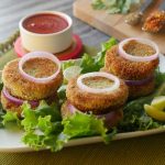 Ab pheetay hoye anday mein dip karein phir breadcrumbs mein coat ker lein.